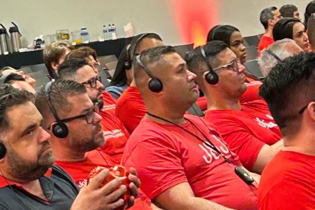 Atendemos ambas as modalidades! Oferecemos tradução presencial para eventos físicos e também tradução remota para reuniões, conferências e transmissões online.